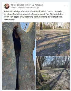 Auf den Spuren des Filmfestivals im Ludwigshafener Stadtpark mit Volker Ziesling von „Waldwende Jetzt!“