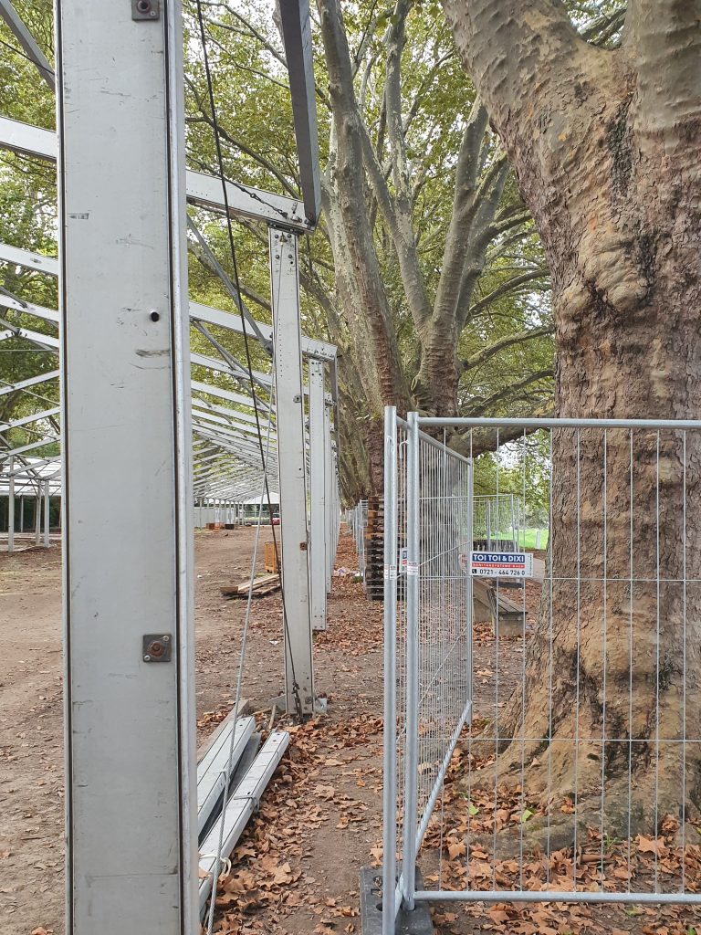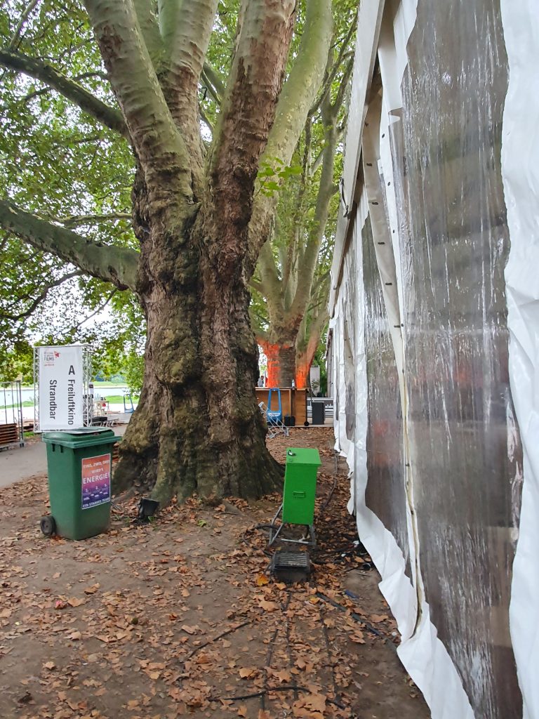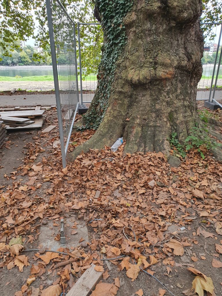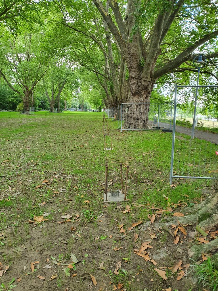 Erdnägel direkt im Wurzelbereich der alten Platanen