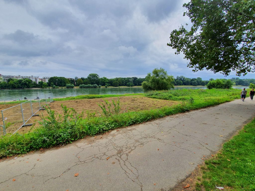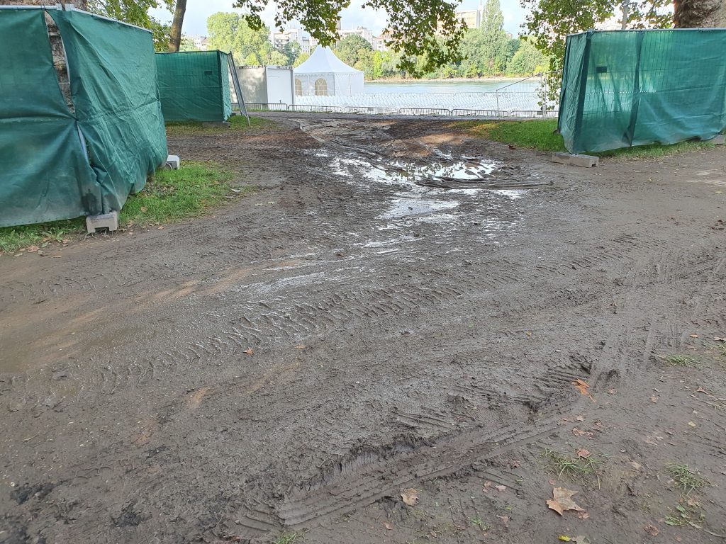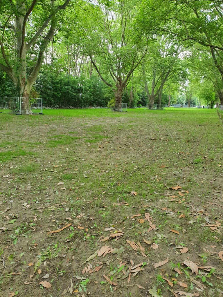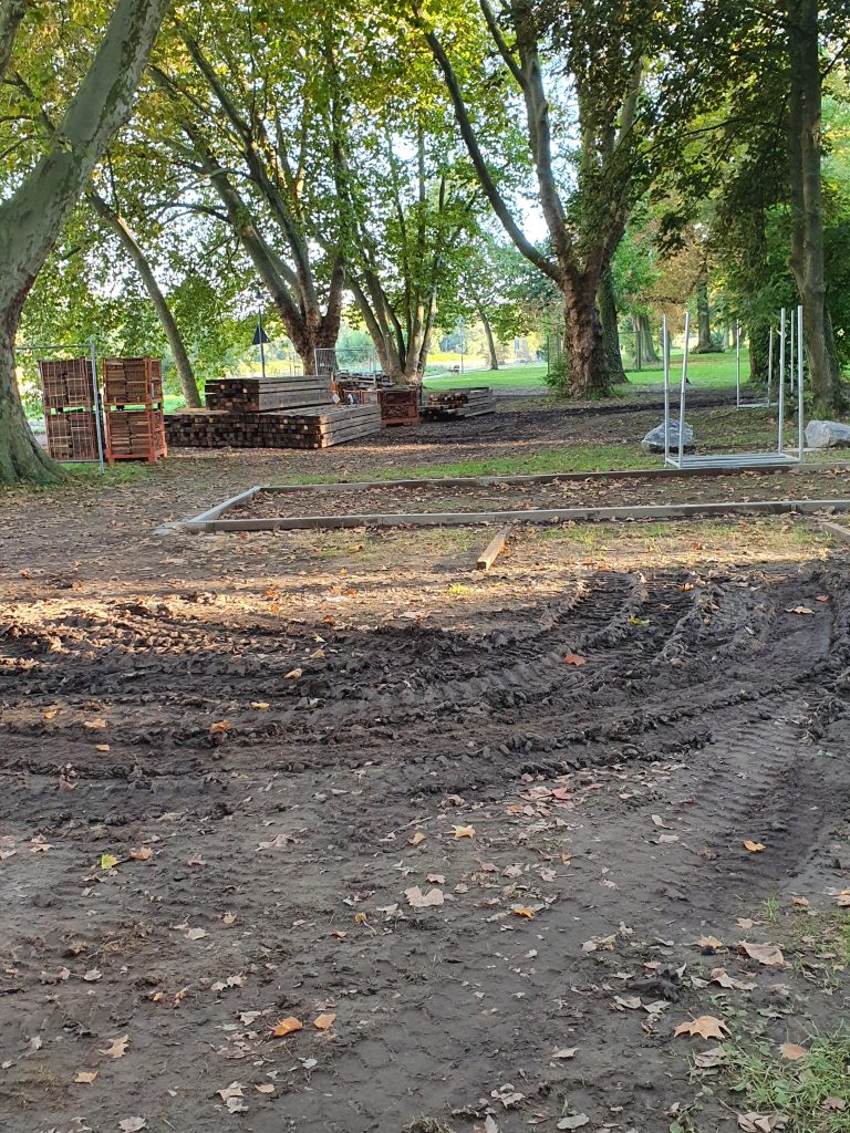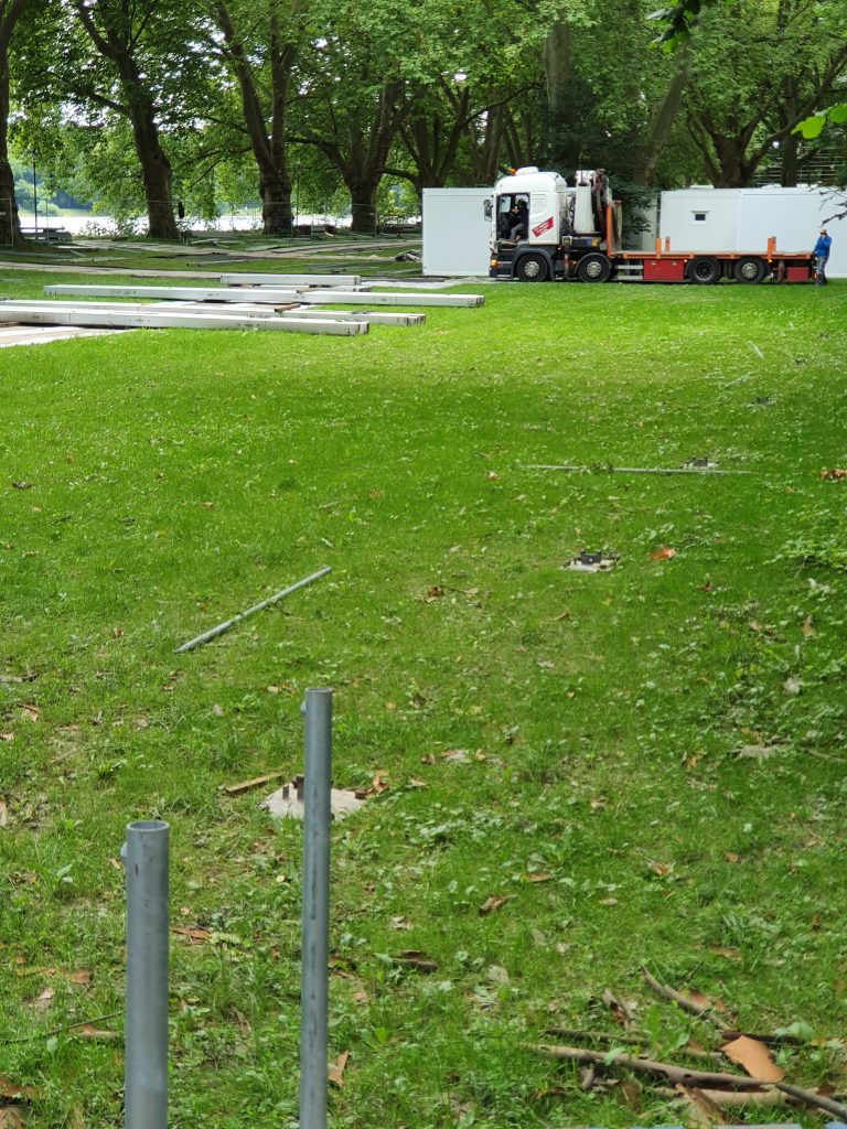 Zustand der Uferwiese während des Aufbaus
